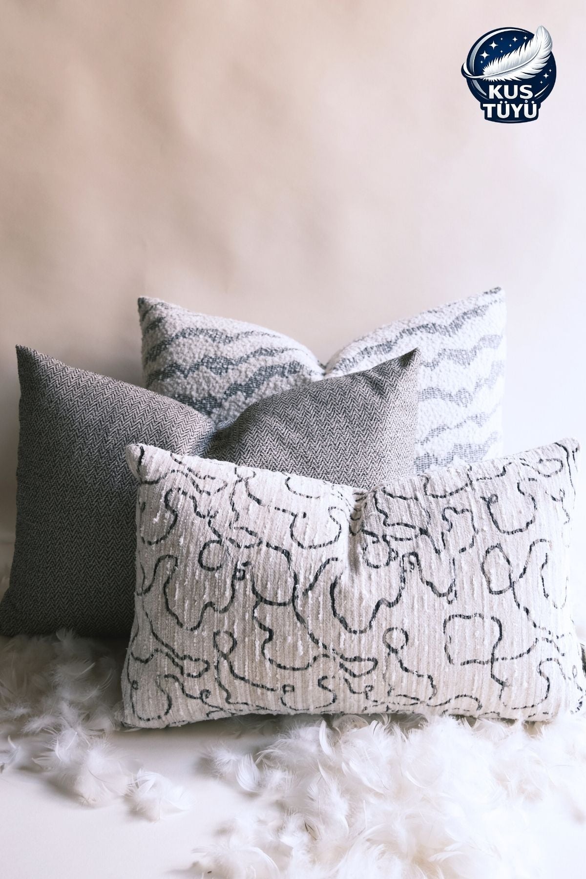 Bu özel set; farklı dokulara ve lif karışımlarına sahip üç ayrı kırlenti bir araya getirerek mekâna katmanlı, dengeli ve doğal bir görünüm kazandırır. Yüksek viskon ve pamuk oranına sahip yüzeyler yumuşak bir temas sunarken, akrilik ve polyester destekli dokular formun uzun süre korunmasını sağlar.
