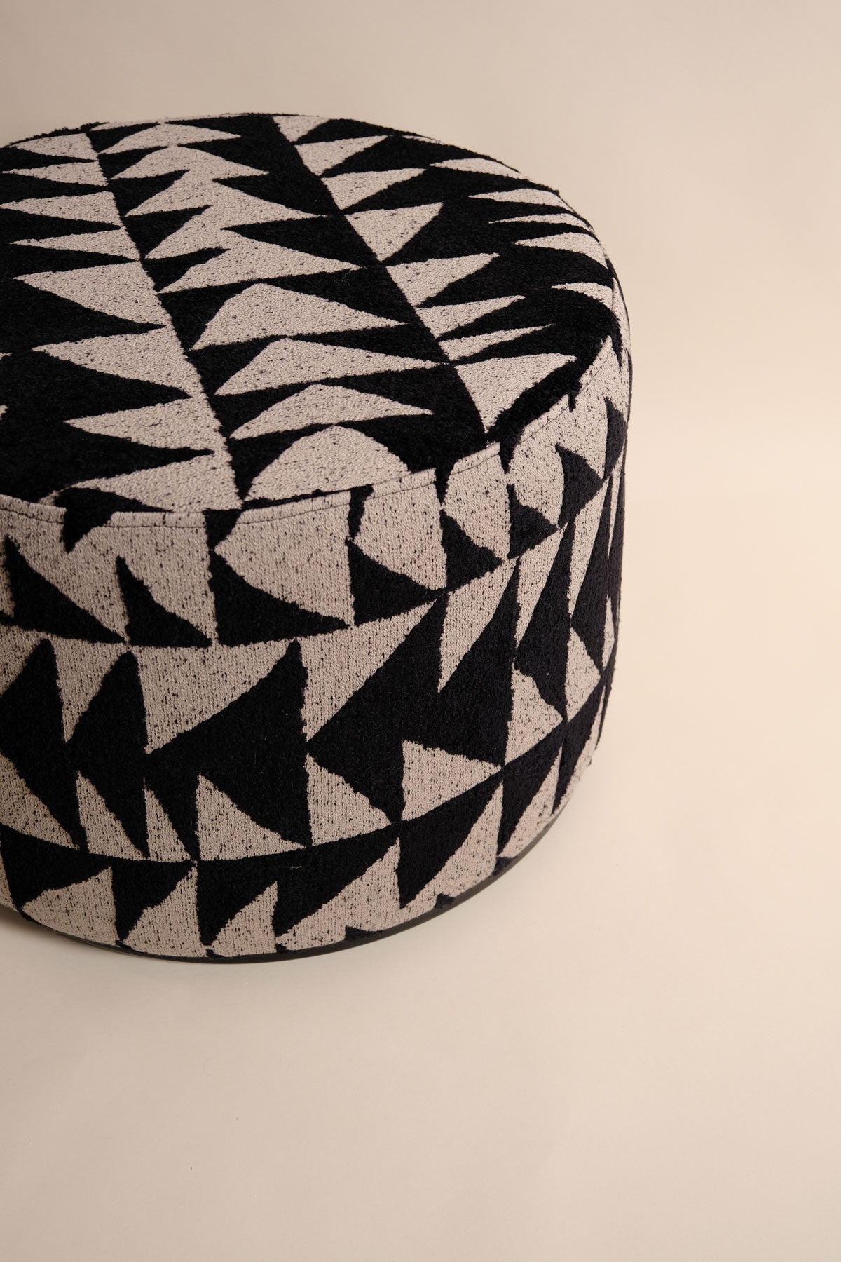 Velu Puf, güçlü geometrik deseni ve modern çizgisiyle yaşam alanlarına enerjik ve sofistike bir görünüm kazandıran özel bir tasarımdır. Yuvarlak formu, yüksek yoğunluklu 10 cm sünger dolgusu ve sağlam MDF gövdesi ile hem estetik hem de konforlu bir oturum sunar. Alt bölümde yer alan 3 cm lake boyalı MDF zemin, pufun duruşuna şık bir tamamlayıcılık katarken kalın keçe bantlarla koruma altına alınarak zeminde sürtünme riskini azaltır.